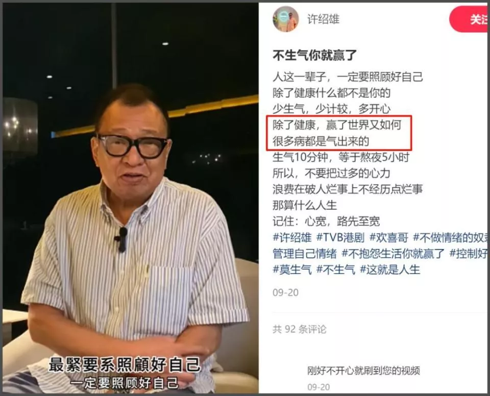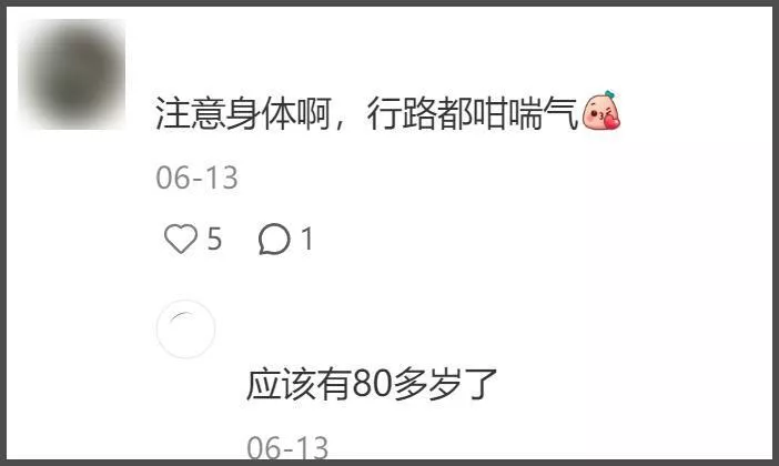 不过当时6月份天气炎热,许绍雄走路时间稍微长一点就气喘,满头大汗。当时就有网友注意到,还留言让他注意身体。