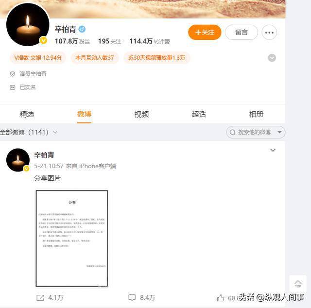 翻看他的社交账号会发现,他的最后一条动态是妻子的讣告,就连头像也还是一支白色的蜡烛。