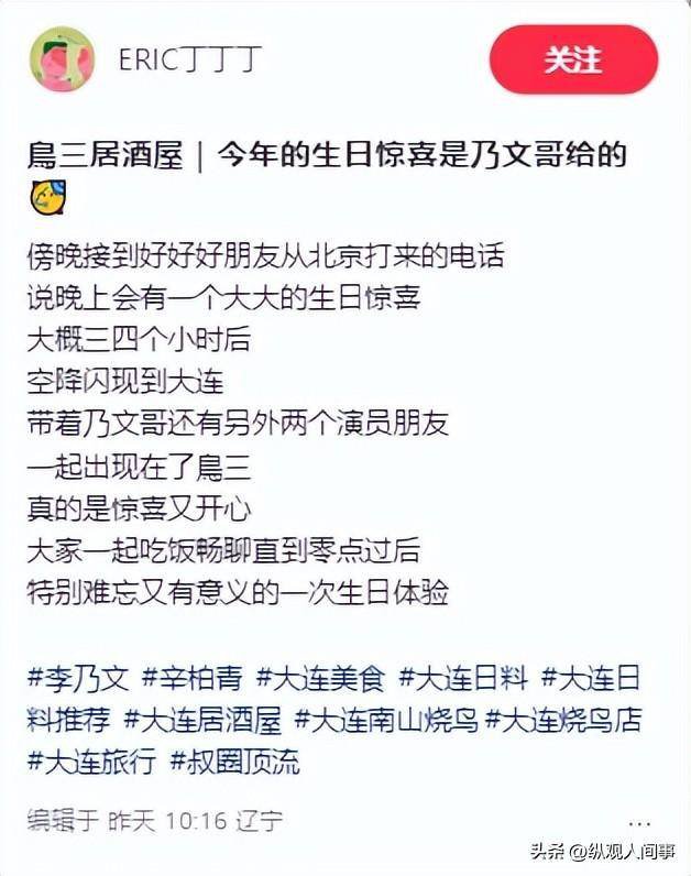 在最新动态中,有人分享了和辛柏青、李乃文一起吃饭的照片。