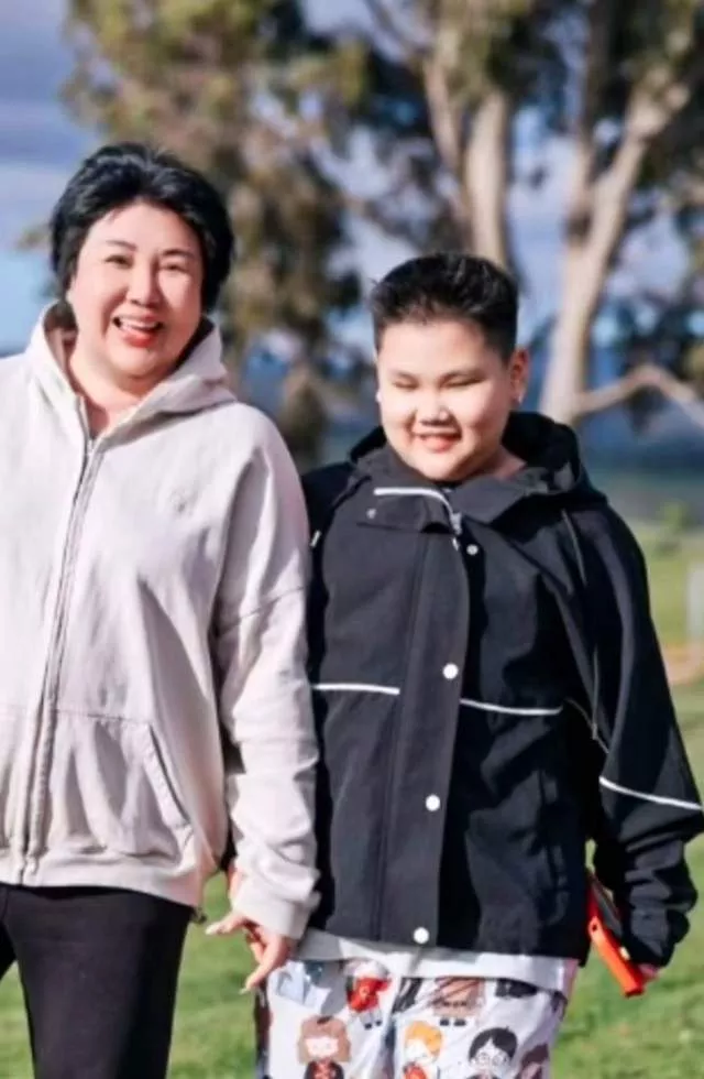 10岁大的郭汾阳身材很壮,看起来比妈妈王惠还胖,郭德纲一不小心竟成了全家最瘦的人。