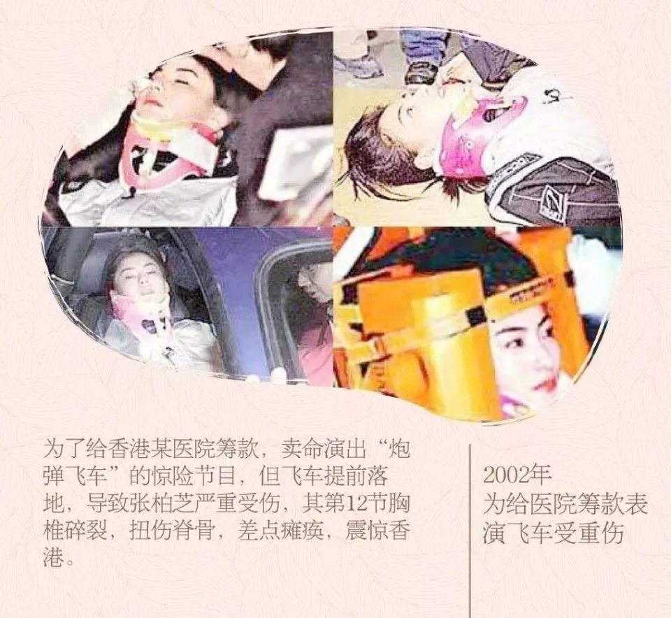 就比如2002年,她接受无线电视台的邀请,在一场慈善晚会中做危险程度较高的飞车表演,表演过程中出现意外全身不能动弹被紧急送医治疗。