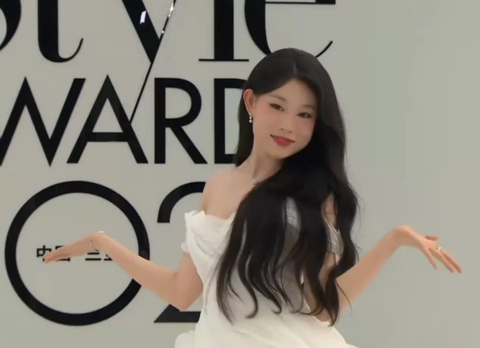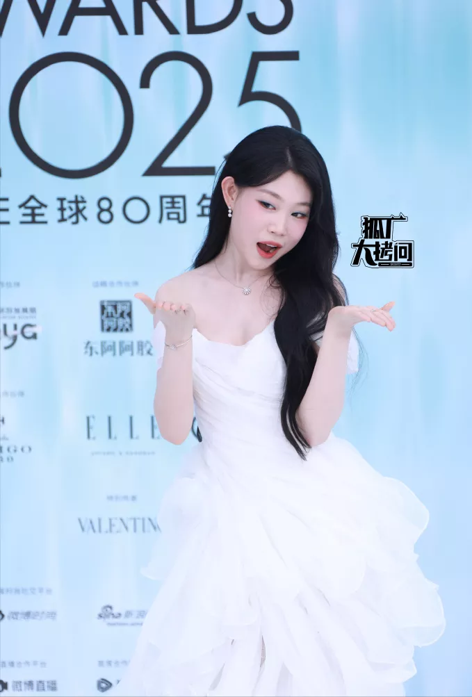 走在红毯上蹦蹦跳跳的一点不怯场,跟在舞台上唱“美美桑内”一样一样的,青春无敌,可爱无敌。