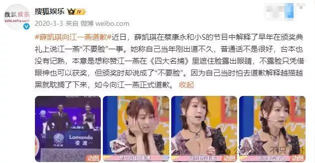 虽然后来薛凯琪向江一燕道歉,解释说自己普通话不好,她想表达的意思是称赞江一燕在《四大名捕》里不露脸只凭眼神也可以获奖,但颁奖时却说成了“不要脸”。