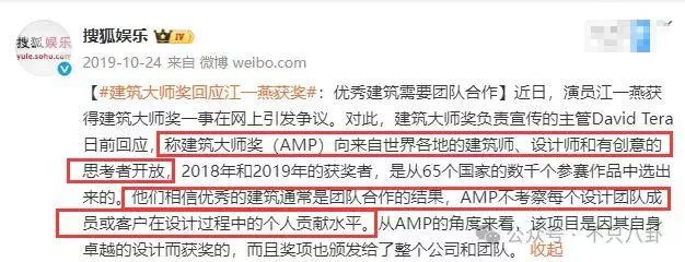 由于质疑声越来越大,该建筑大师奖回应称,优秀建筑需要团队合作。
