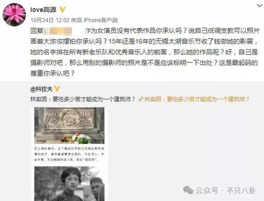 窦唯前妻,知名摄影师高源就怒怼江一燕爱挂名:“作为女演员没有代表作品你承认吗?说自己低调支教可是照片画着大浓妆摆拍你承认吗?15年还是16年的无锡太湖音乐节收了钱做她的影展,她的名字排在所有新老乐队和优秀音乐人的前面,那么她的作品呢?好,自己是摄影师对吧,那么用别的摄影师的照片是不是应该标明一下出处?这是最起码的尊重你承认吧?”