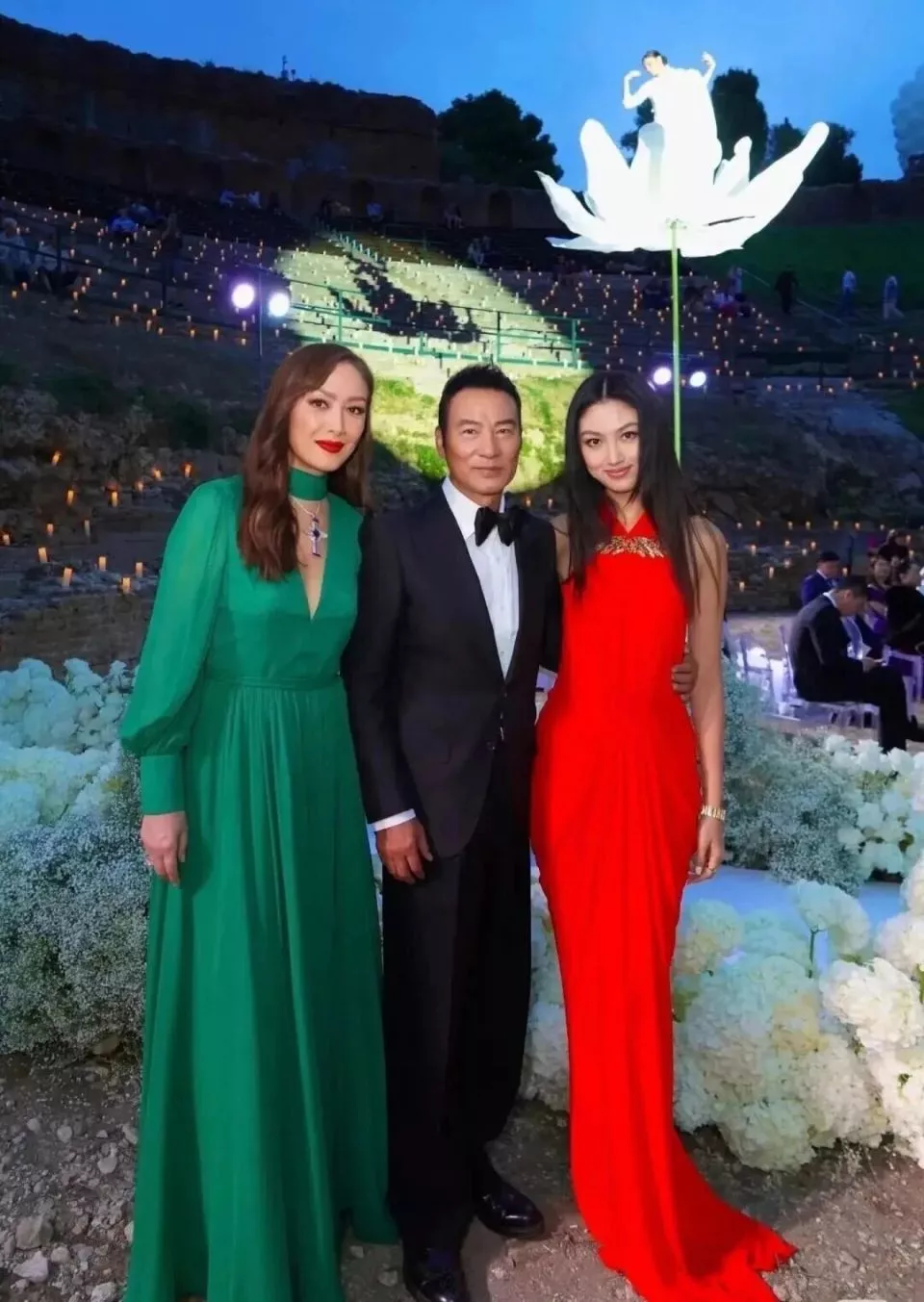 任达华和妻子琦琦也来参加了这场婚礼,琦琦身穿绿色长裙,很有意大利的浪漫气息。任达华把女儿任晴佳也带来参加婚宴了