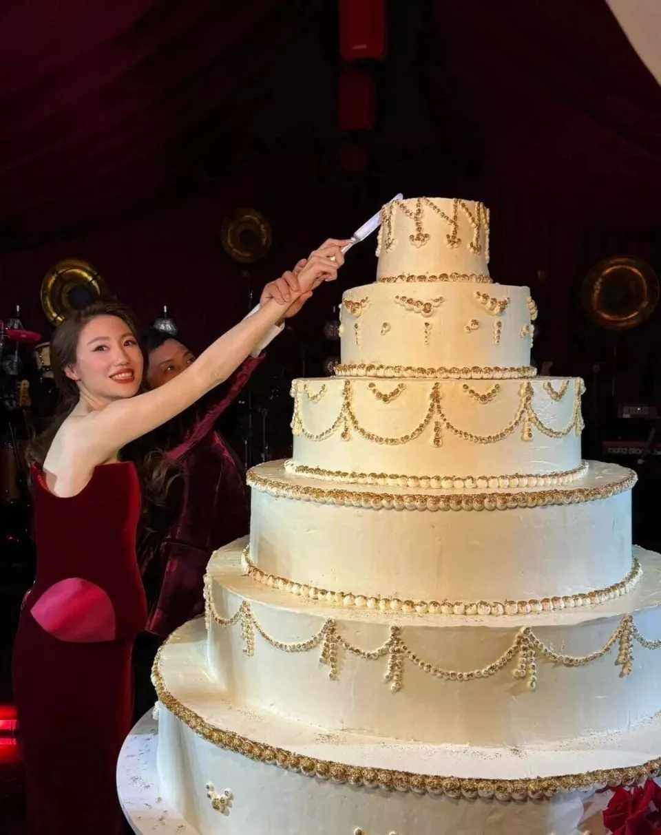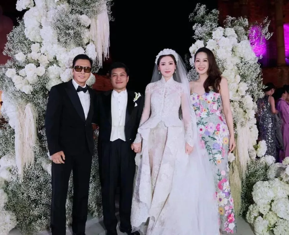这场奢华盛大的婚礼是温州日清集团总裁朱若茜嫁女,她女儿Amanda身着华丽的白纱和甄子丹汪诗诗夫妇合影。朱若茜身穿红色礼服很喜庆大气,她戴着昂贵的珠宝和翡翠,看着比汪诗诗贵气很多。