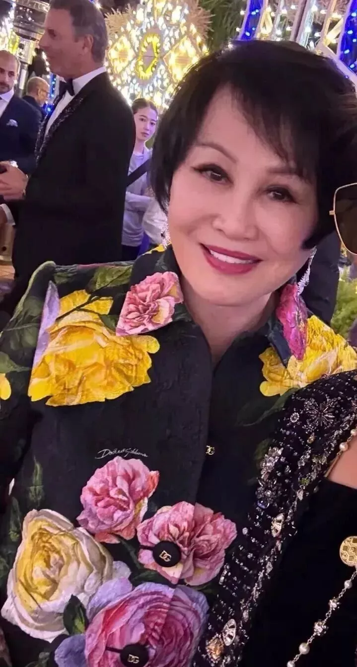 靳羽西也来参加这场婚礼了,她身穿花卉图案的D&G外套,打扮的很明艳。