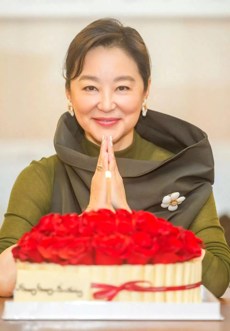 11月3日,林青霞的微博更新了。没有华丽文案,就两个字:“感恩”。配着一张照片,是她对着玫瑰蛋糕双手合十,素雅的衣服衬着恬静幸福的笑,皮肤紧致仅眼角微纹,眉眼间的神采半点没减,被网友称赞“状态似50岁。”
