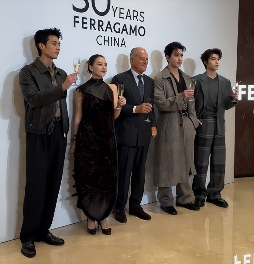 11月5日当天,陈星旭身着深色系Ferragamo经典剪裁西装亮相,笔挺的线条勾勒出修长身形,尽显优雅绅士风度。