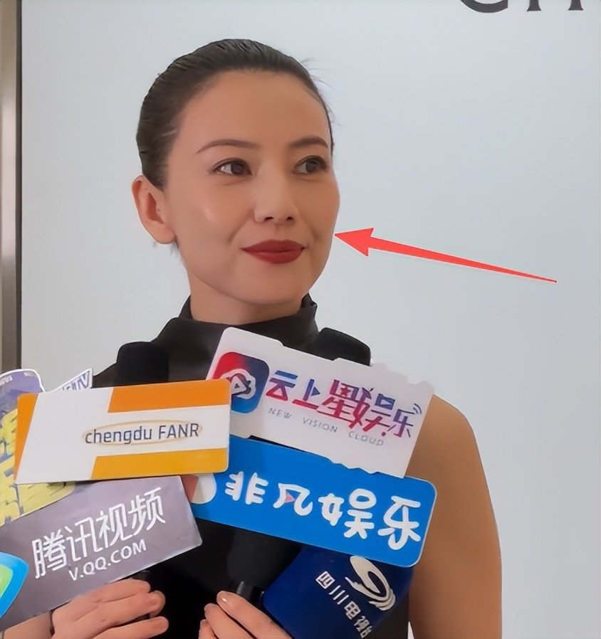 不过仔细观察可以发现,高圆圆的脸上已经有了明显的皱纹,尤其是眼角和嘴角的细纹比较突出。
