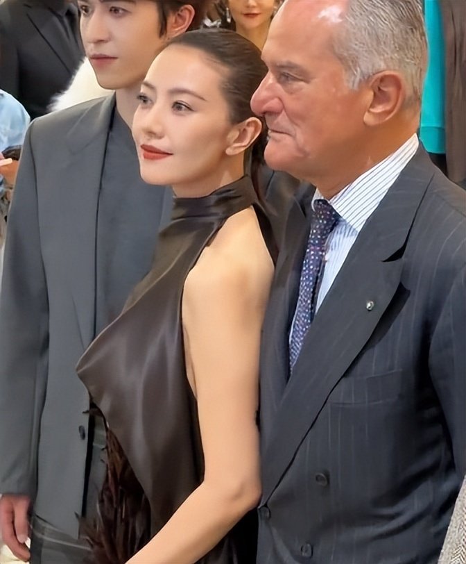 为了搭配这套礼服,她选择了一个大背头造型,这种发型非常考验头型,稍不留神就会油腻到翻车。
