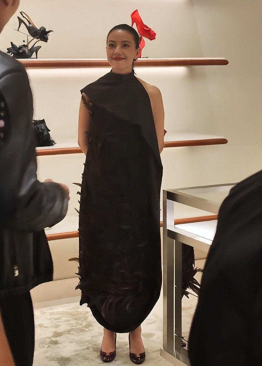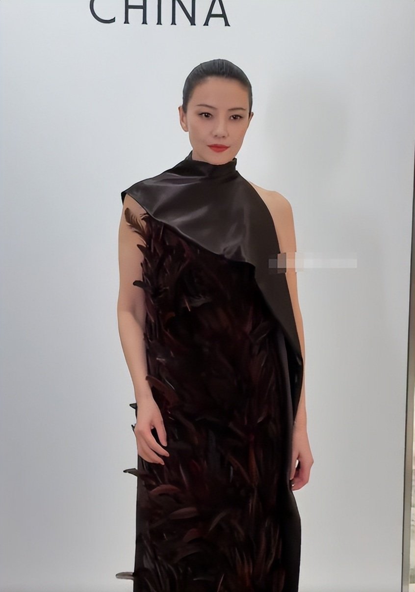现场照片显示,高圆圆站姿有些含胸驼背,肩膀前倾,完全没有以往的优雅气质。