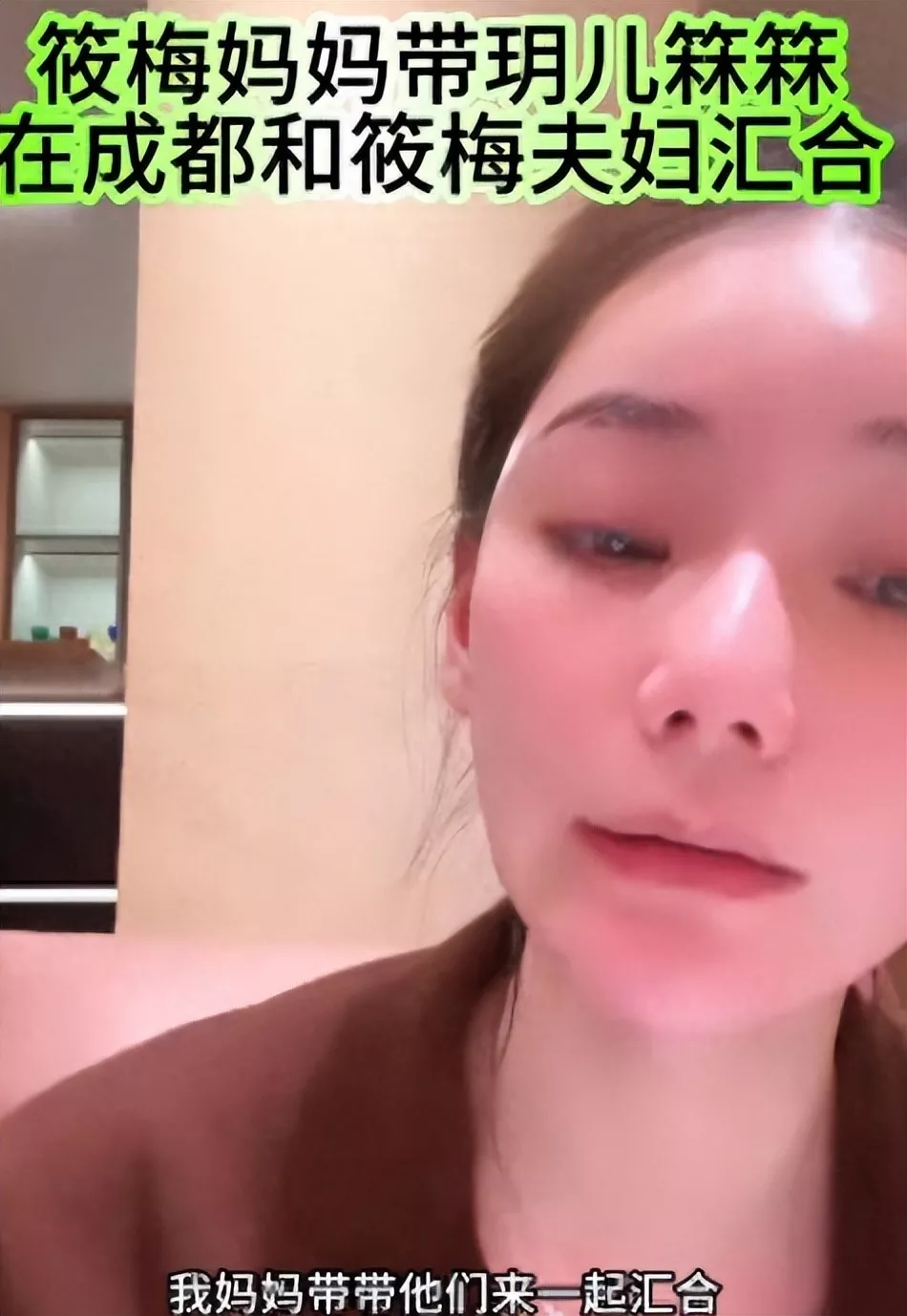视频中,她穿着藕粉色家居服,头发扎成马尾,脖子上戴着一条银色项链。