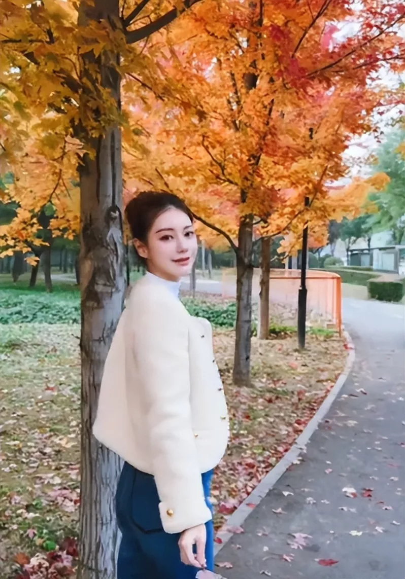 收拾好之后便美美的出门了,她穿着纯白色内搭,套着一件米白色小香风外套。