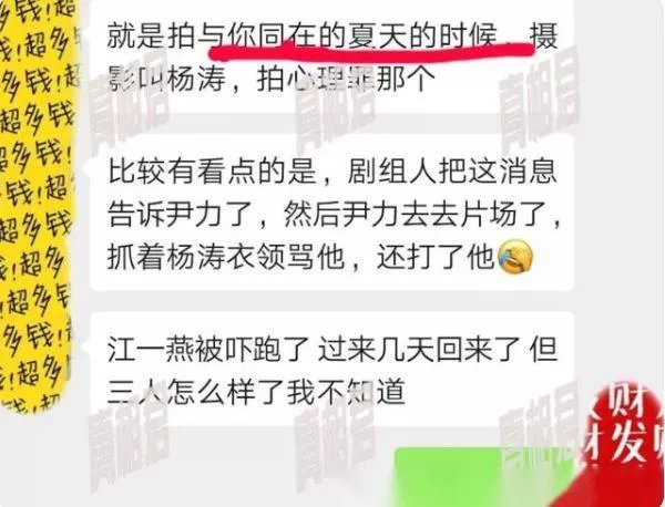 坊间传闻,与尹力同居期间,江一燕又与一个叫杨涛的摄影师发展关系,导致男友大打出手。