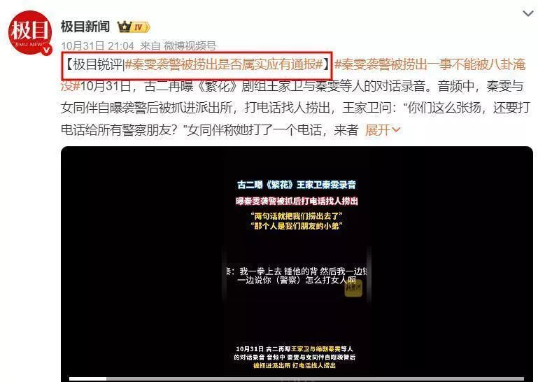 11月初,官媒集体发声。 极目新闻发表《秦雯袭警被捞出是否属实应有通报》,强调“用蓝底白字通报给公众交代”。