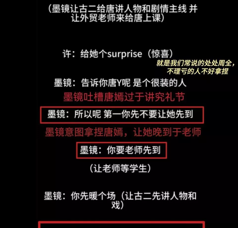 他指示团队延迟通知唐嫣排练时间,让辅导老师提前到场,制造唐嫣“耍大牌”的假象,理由是“逼她找到角色感觉”。