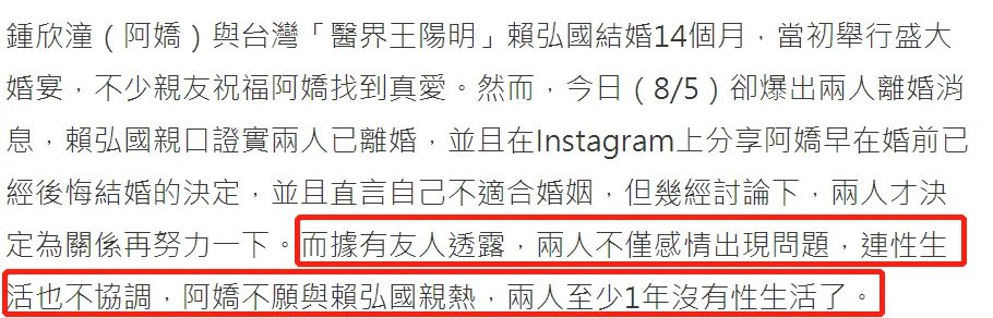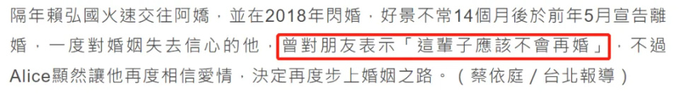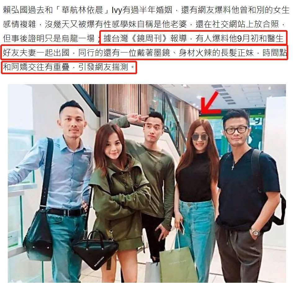 “赖弘国婚后仍与网红、美女玩乐,让阿娇很尴尬。”