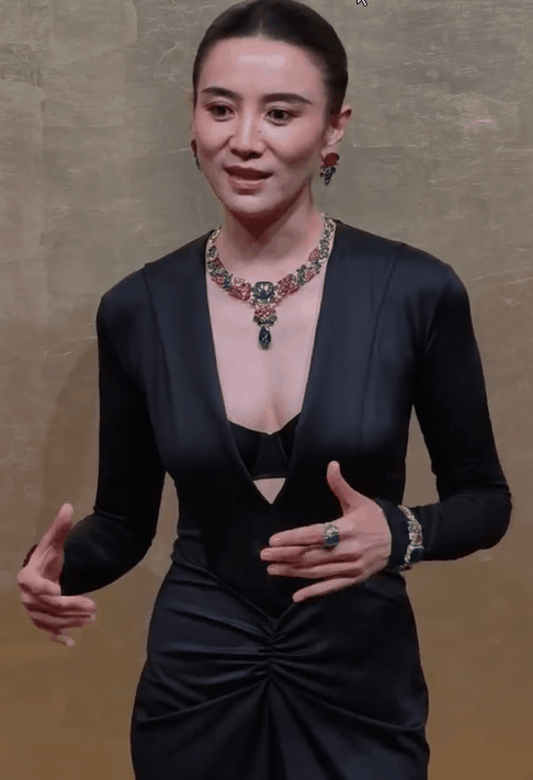 猎豹形状的项链吊坠,让张婧仪也迸发出了母豹般的野性,从容、优雅,美的独树一帜。