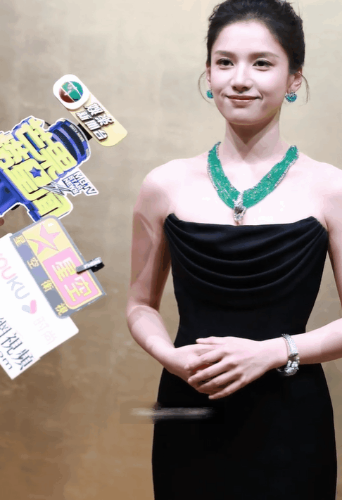 搭配翠绿色的高级珠宝首饰和高盘发,张婧仪的身上展现出了豪门大小姐的矜贵与傲气。