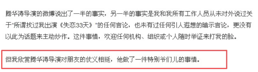 但王珞丹对此事的回应倒是比以前更有情商了,她辟谣炒作,又表示:“我欣赏滕华涛导演对朋友的仗义相挺,他做了一件特别爷们的事儿。”