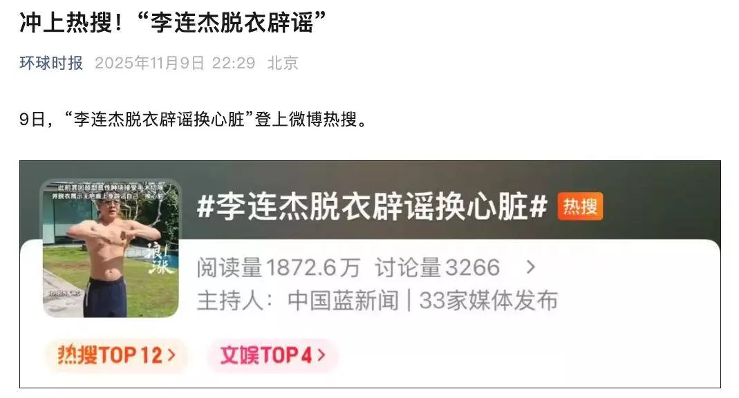 最近,李连杰成为了网络热议的焦点,一个关于他“换心脏”的传闻在网络上疯狂流传,引起了不少人的关注和猜测。作为一个从上世纪90年代就活跃在银幕上的武打巨星,李连杰的每一次公开露面都备受期待,而这次的舆论风暴则更显复杂。究竟是什么让这位功夫影星陷入了“换心”风波?事实真相又如何?让我们从头梳理下这起事件背后的故事。