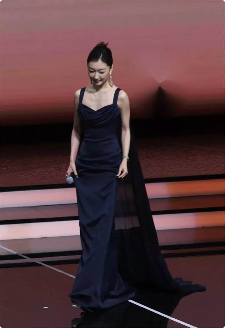 她整个人气色好、皮肤亮、站姿稳,整个人优雅松弛,在舞台上没有半点拘谨。