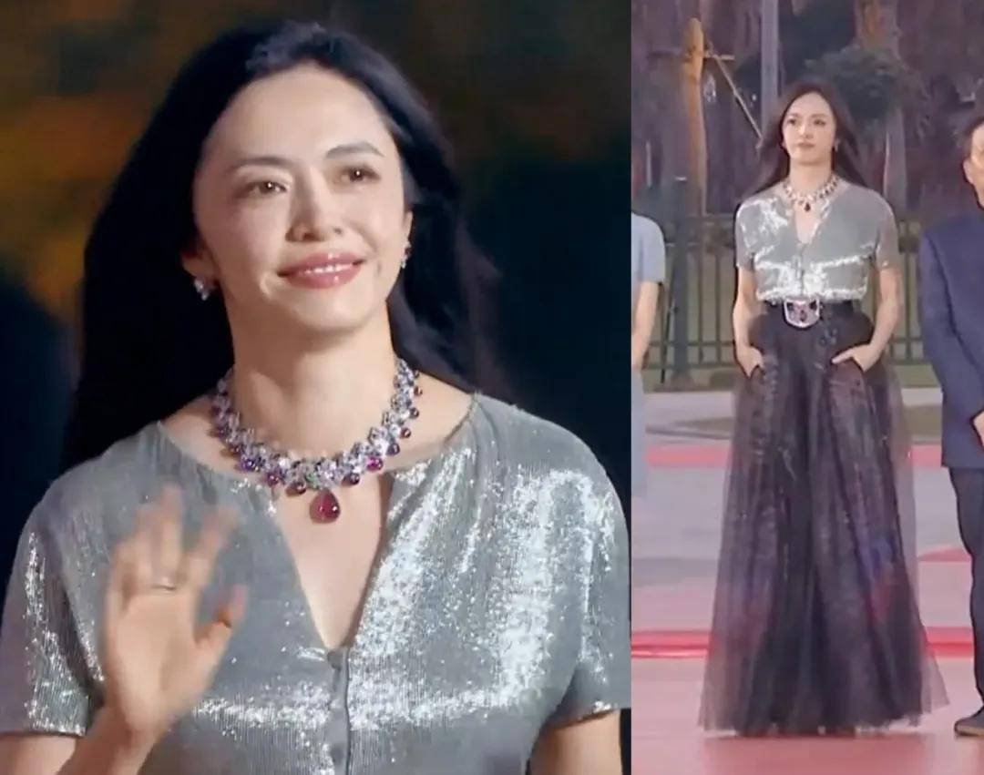 姚晨的珠宝很抢眼,但这套银色亮面上衣搭配紫色半身纱裙的高定礼服很难懂,跟时尚、好看似乎都不沾边。