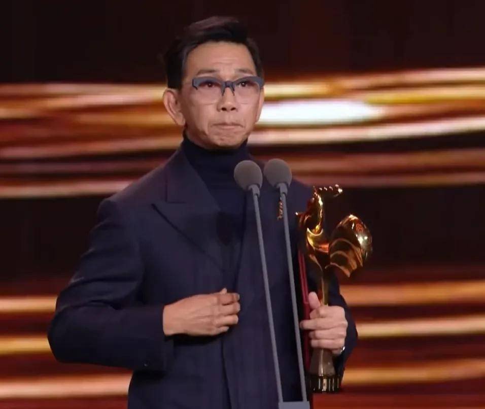 拿到了金鸡奖的袁富华就集齐三金了,他提到自己已是耳顺之年,上台领奖依旧激动,含泪发表感言获得热烈掌声,张艺谋举起手为他鼓掌。