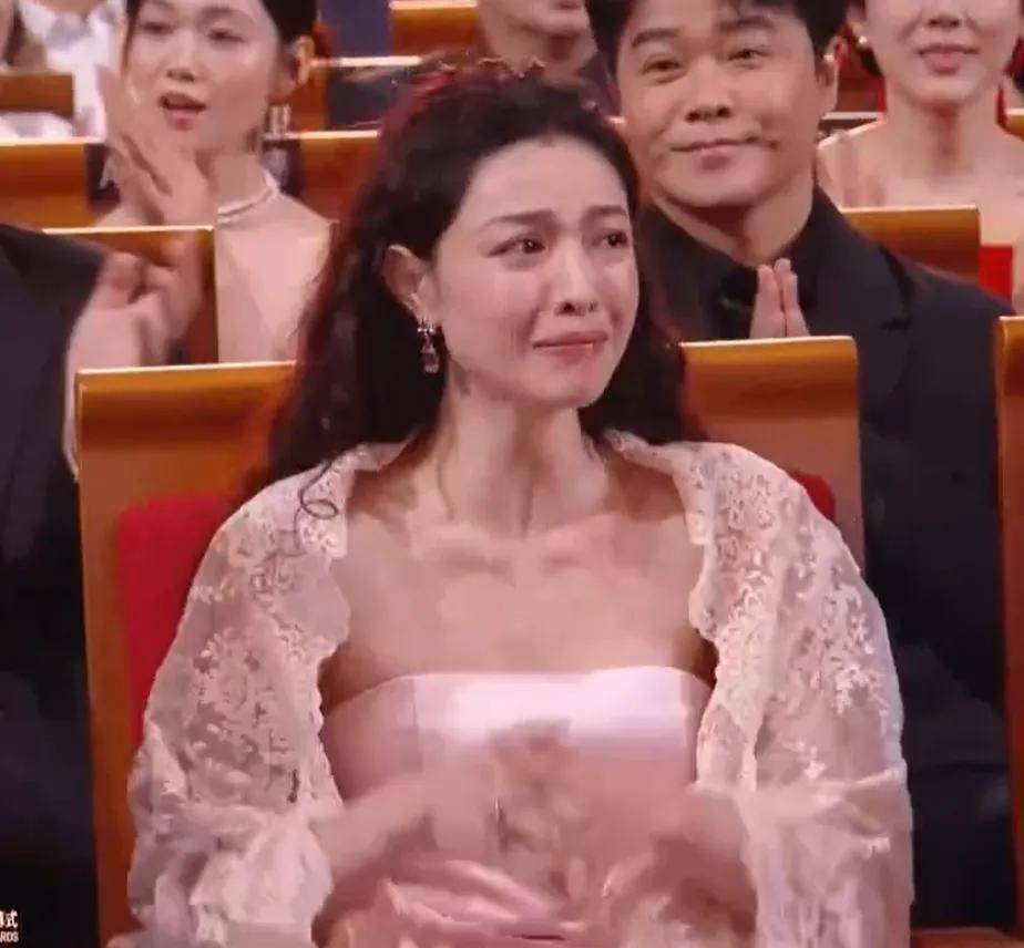轮到钟楚曦哭着上台领奖,不止一位明星纷纷露出“让我看看她要干啥”的表情。