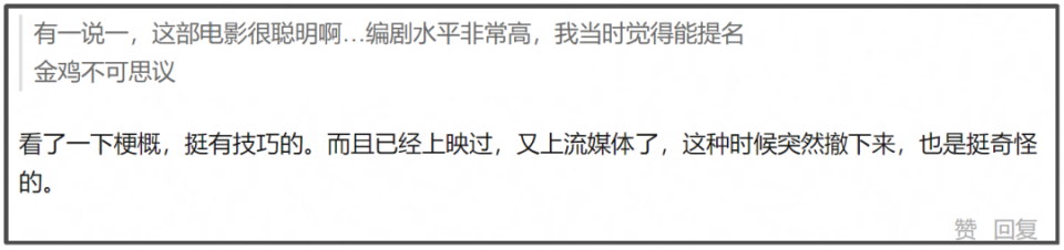 《家庭简史》讲述的是中产家庭的亲子关系,该片不止在院线上映过,也在流媒体放映,此时提名突然被撤,有网友猜测可能剧情敏感,但若是剧情有问题,那么应该早撤了,而不是被提名后再被撤。