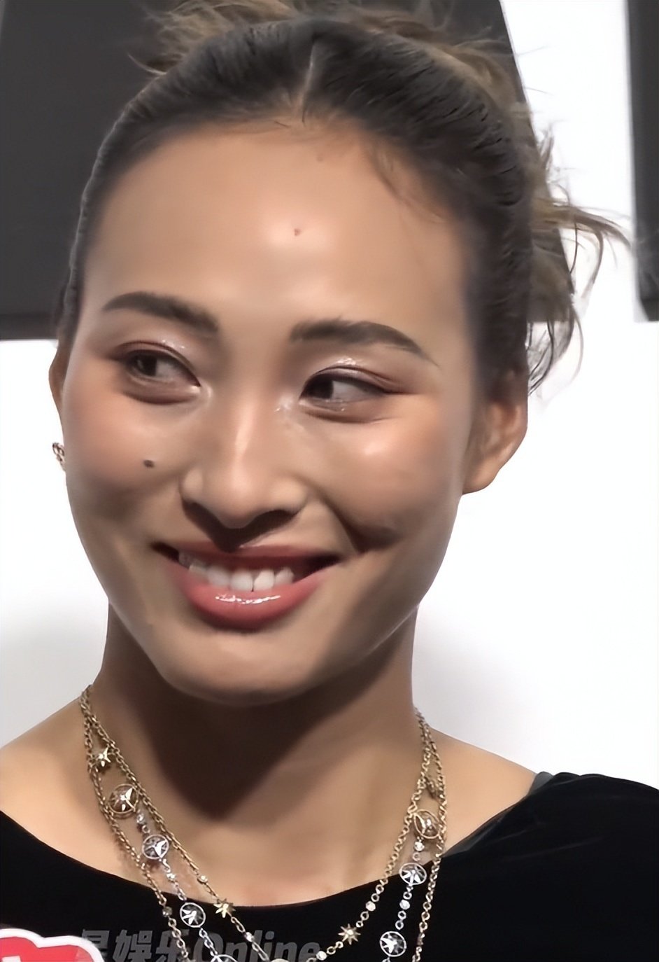 面对镜头,姐笑得十分灿烂,而且这张脸无论做什么表情都无比自然。