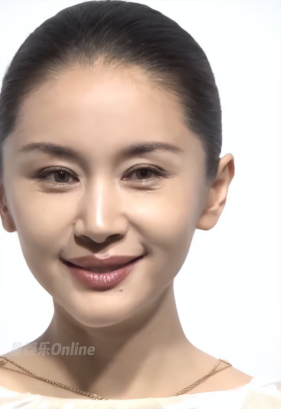 镜头拉近,虽然眼部有些细纹,面部稍微僵硬。