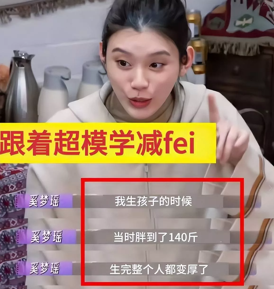 产后本来就很难一下子恢复得很好,奚梦瑶也没能免俗,她不止一次在节目里调侃过自己的身材,承认生孩子对她的骨盆造成了很大的影响。