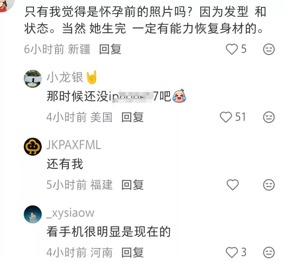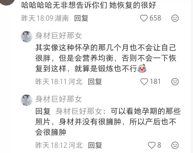 她产后恢复的确实很快,看她身材几乎没有一丝生育的痕迹,腰臀线条流畅,如果不是看她手上的新款手机型号,根本分辨不出到底是旧照还是新图。