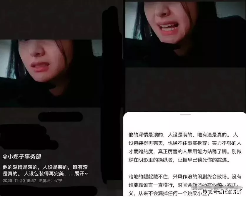 的标签小火一把。而此次她在朋友圈发文痛斥:“我用文字维护了他十年的‘深情’,现在才发现,所有的温柔都是演的,人设是精心包装的假象,唯有‘渣’是刻在骨子里的真。”