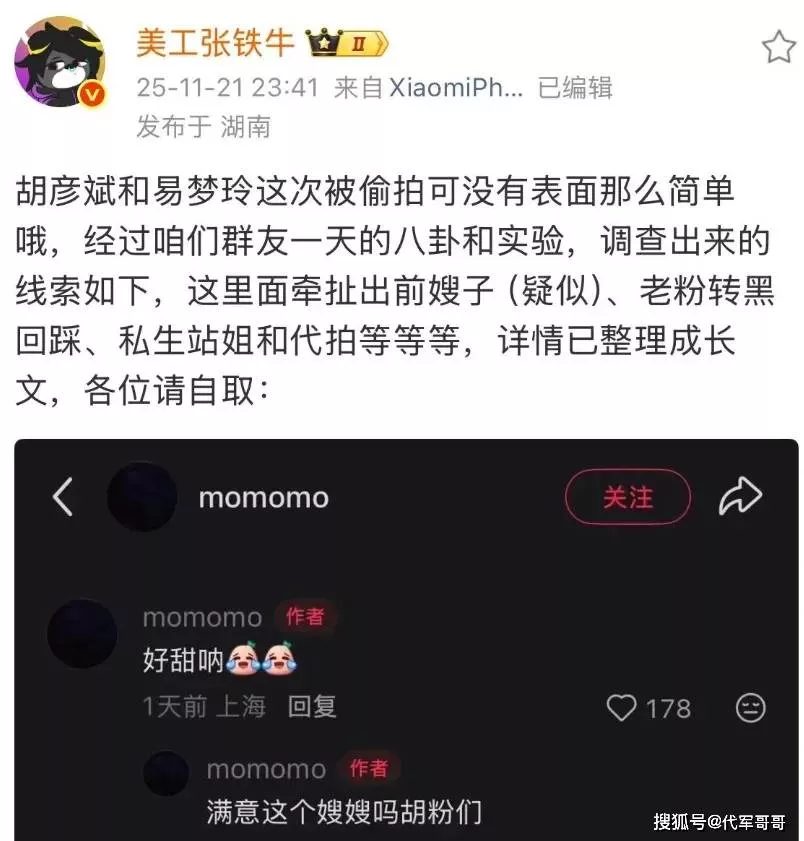他还质疑恋情曝光的 “主动性”:“胡彦斌一直对恋情讳莫如深,这次公开完全是‘被实锤后被迫承认’——