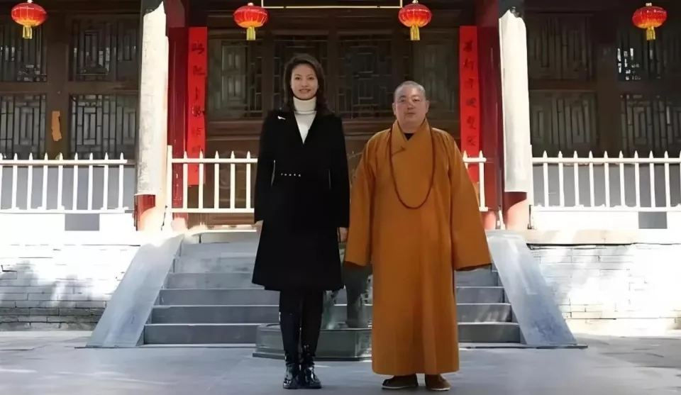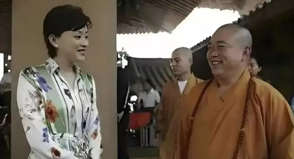 早年她也是受到电视台委派,到少林寺给释永信做采访。