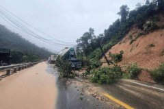 1辆巴士16日开到越南庆黎山口时遭遇山崩,导致6死19伤。图为该山口17日时的照片。(美联社) 越南险峻的庆黎(Khanh Le)山口16日晚间发生山崩,1辆巴士被掩埋,导致6死19伤的悲剧发...
