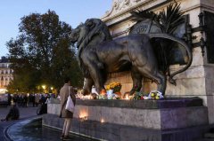法国将于13日纪念巴黎恐怖攻击事件满10周年,巴黎恐攻共造成130人死亡,图为0民众站在临时纪念碑前悼念受难者的画面。(法新社) 法国将于13日纪念巴黎恐怖攻击事件满10周年,总统...