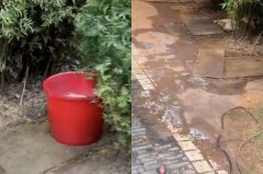 中国万福广场公园放水桶供民众露天大小便,在被网友投诉后已移走,但现场仍有满地尿渍。(翻摄自极目新闻) 江西九江武宁县万福广场公园近日因「灌木丛里摆放尿桶」事件登上热...