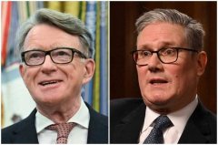 英国首相施凯尔(右)及前英国驻美国大使曼德森(左)。(法新社,本报合成) 英国首相施凯尔今天向已故性犯罪富豪艾普斯坦案受害者致歉,就任命与艾普斯坦关系密切的曼德森出...