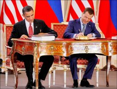 新战略武器裁减条约于2010年由时任美国总统欧巴马与时任俄罗斯总统麦维德夫(Dmitry Medvedev)签署。(路透档案照) 俄罗斯与美国间仅存的最后一个关于限制核武器的条约今天到期失...