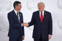 美国总统川普(右)13日在埃及的加萨和平峰会场边,与西班牙总理桑杰士握手致意。(法新社档案照) 美国总统川普再度就北大西洋公约组织(NATO)成员国国防支出施压,点名西班牙...