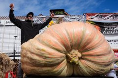 美加州工程师道森13日在旧金山半月湾举行的第52届世界南瓜称重锦标赛上赢得最高奖项。(美联社) 来自美加州圣塔罗莎(Santa Rosa)的工程师兼园艺爱好者道森(Brandon Dawson),13日在...