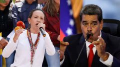 委内瑞拉局势紧绷,马查多(左)向马杜洛(右)提「和平交权保障」。(路透资料照) 委内瑞拉诺贝尔和平奖得主马查多(María Corina Machado)13日在藏身处接受《法新社》采访时表示...