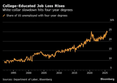 美国最新就业数据显示,拥有四年制大学学位的群体如今占全国失业人口的比例首次升至 25%,凸显今年白领就业市场显著放缓。 美国劳工统计局(Bureau of Labor Statistics)在因政府关门而...