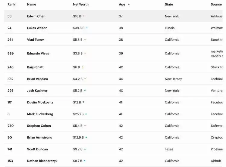 《福布斯》的新榜单出炉,今年美国最年轻的亿万富翁(10亿+美元),是一位37岁的华裔,名叫Edwin