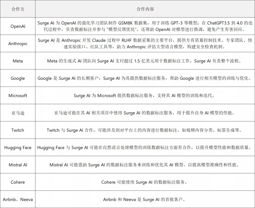 AI做的生意也是给大模型企业提供数据标注和训练,被戏称为AI界的富士康,客户涵盖了OpenAI、微软、谷歌、Meta等各大AI头部公司。